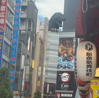 Walking the streets of Shinijuku, we walked past the famous Godzilla Hotel which has a giant Godzilla head on the rooftop and has Godzilla- themed rooms. We stopped in to check it out and dilcious midday drinks.